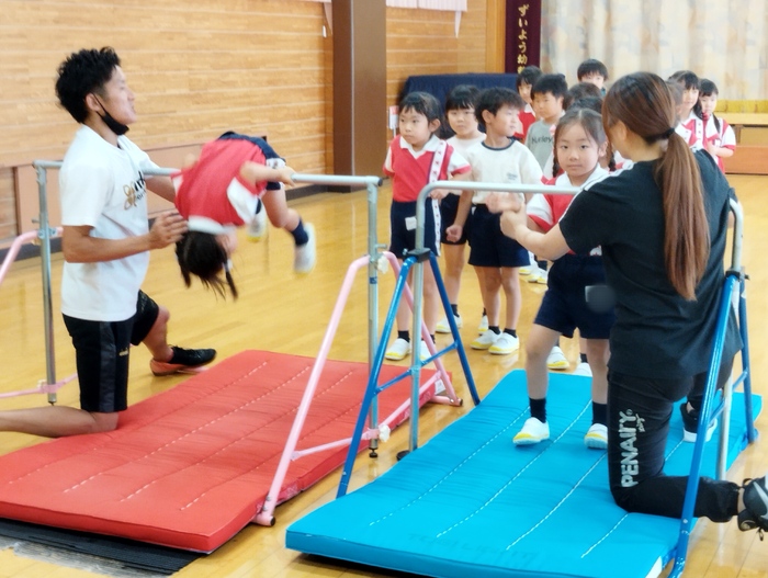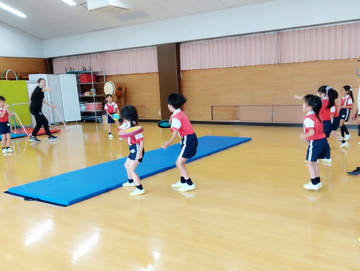 10月7日(火)【あひる/年長】体育遊び【年中】硬筆練習 | ||