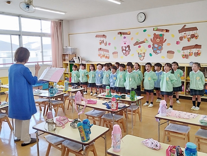 今日は合唱の先生をお招きして、年少~年長組がクラスごとに合唱指導を受けました。 先生のピアノに合わせて元気いっぱいに歌ったり、声の出し方を教えてもらったりと、 どのクラスも真剣な表情で取り組んでいました。 これから発表会に向けて、みんなの歌声がますます素敵に響くよう、楽しく練習を重ねていきます♬ | ||