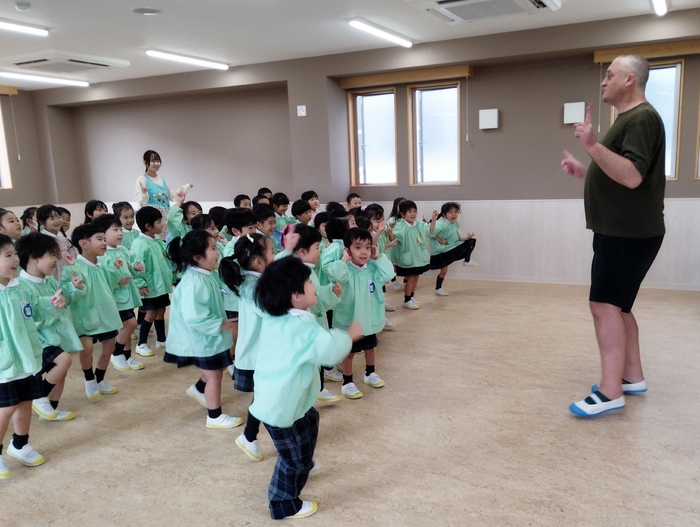 年少、年中、年長組は英語遊びがありました。 今日はバナナ先生が登場してとても盛り上がっていました✨ | ||