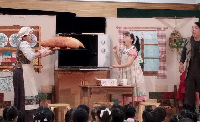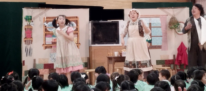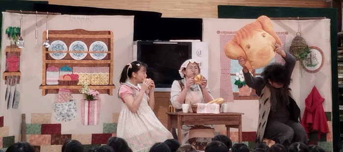 今日は劇団「そらのゆめ」の皆さんにお越し頂き、観劇会を開催しました。 作品は「空とぶ ふわふわパン」。 パン作りをテーマにしたとても愉快で心あたたまるお話で、 子ども達は最初から最後まで笑顔いっぱい! ふわふわのパンが空を飛ぶ楽しいお話に、夢中で見入っていました✨ 劇団の皆さん、素敵な時間をありがとうございました! | ||