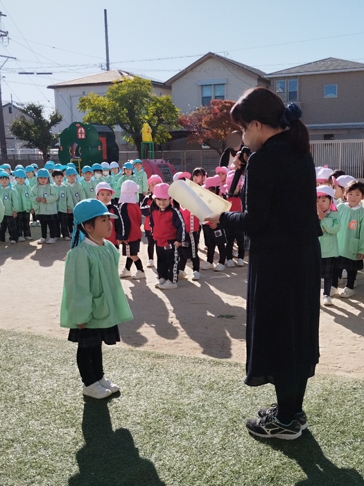 今日は月に一度の避難訓練の日。 今日は外遊び中の地震を想定した訓練を行いました。 地震はいつ起こるかわかりません。 毎月いろいろな場面を想定して訓練を重ねており 子ども達も素早く行動する事が出来ていました。 | ||