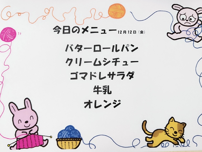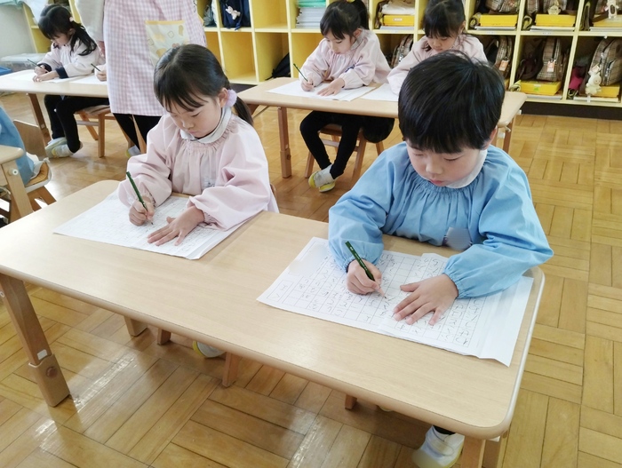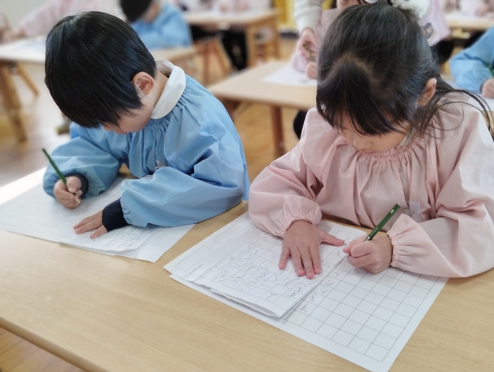 年長組は硬筆練習がありました。 長い文章にじっくりと向き合い、 集中して取り組みます。 その姿はさすが年長さん! 小学生に向けての姿勢が少しずつ、 しっかりと育ってきていますね✨ 給食は冬にピッタリのクリームシチューでした。 人参やじゃが芋、ブロッコリーなどの野菜も 美味しく食べてくれる子が多かったです。 | ||