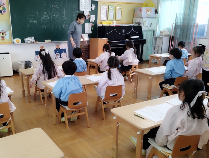12月12日(金)【年少】造形遊び【年長】硬筆練習 | ||