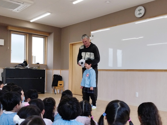 今日は英語遊びの日でした。 講師の先生の元気な声に合わせて、子どもたちは英語のリズムや言葉に親しみながら、 コミュニケーションを楽しみました♬ 英語を「勉強」としてではなく、遊びの中で楽しく学べる時間。 これからも、英語を身近に感じながら親しんでいけたらと思います🔤 | ||