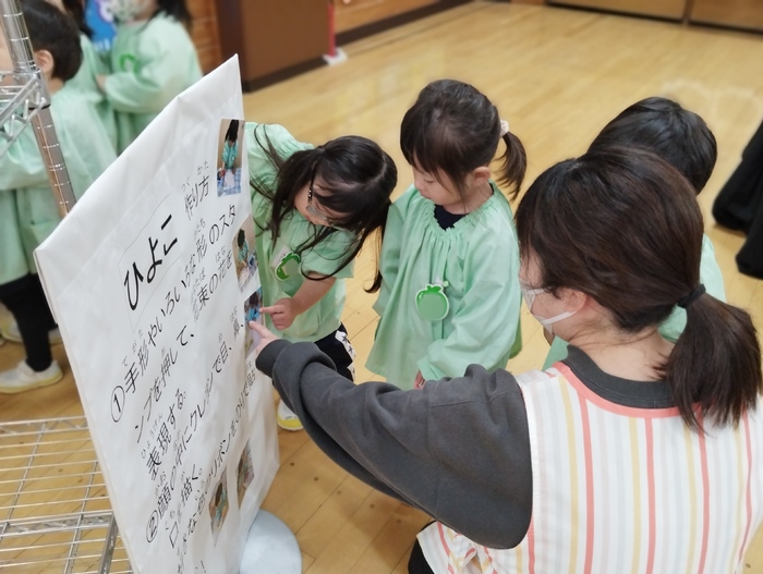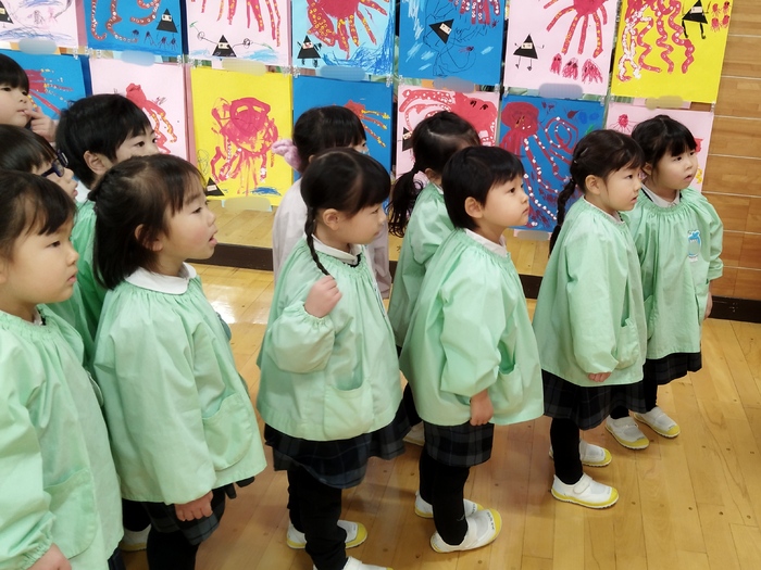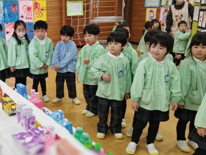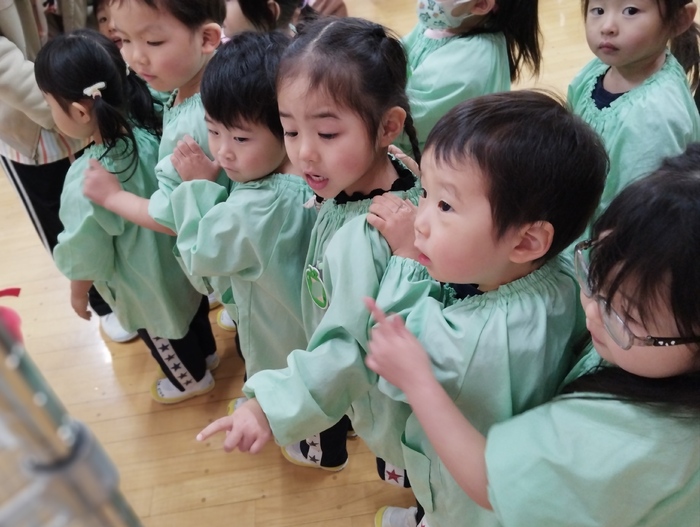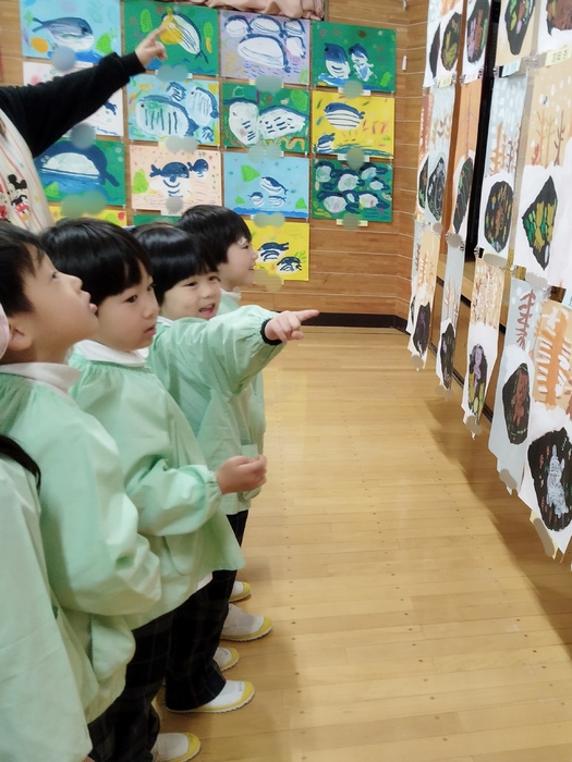 来週の作品展を前に、子ども達が一足先に展示を見学しました。 お友達の素敵な作品に「すごいね!」「どうやって作ったの?」と目を輝かせながら見入る子ども達。 自分の作品を見つけると、 「あったー!」 「見て!私のだよ♪」 と嬉しそうにお披露目する姿に、子ども達の成長と自信が感じられました✨ 来週の参観・作品展では、ぜひお子様の頑張りをご覧いただき、 成長を感じていただけたらと思います🌸 今日は天気も良かったので、午前や午後にゆっくりのびのびと 外遊びもたくさん楽しむ事ができました(o^―^o) | ||