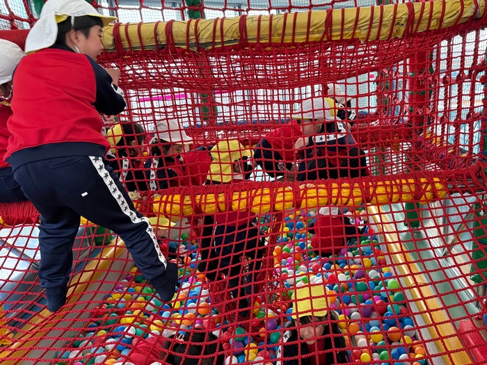 現地では農業科学館を見学したり、プレールームやホールで元気いっぱいに遊んだりと、 楽しい時間を過ごしました。 たくさん遊んだ後は、みんなでお弁当タイム♪ 友達と嬉しそうにおしゃべりしながら 食べる姿がとても微笑ましかったです(*^_^*) また一つ思い出が出来ましたね☆ | ||